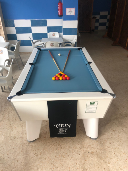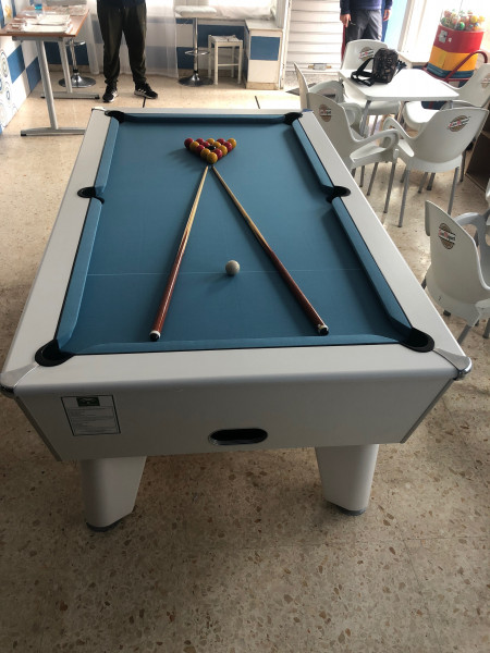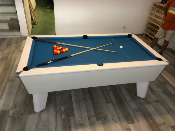 We have a Brand new 7ft óptima white pool table with electric blue elite pro speed cloth for sale at a pre brexit price of 2000€