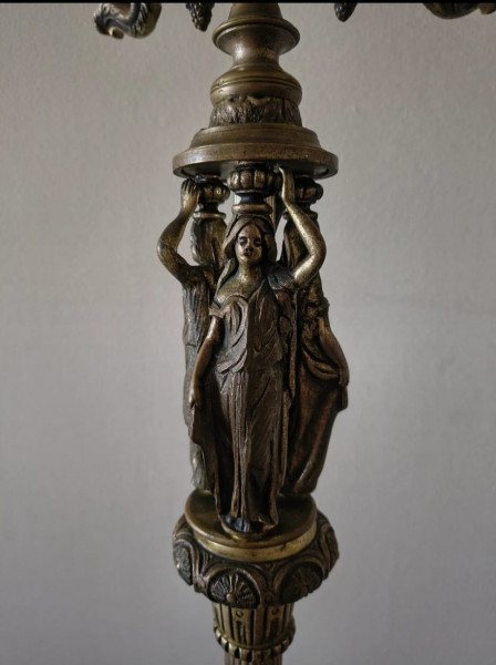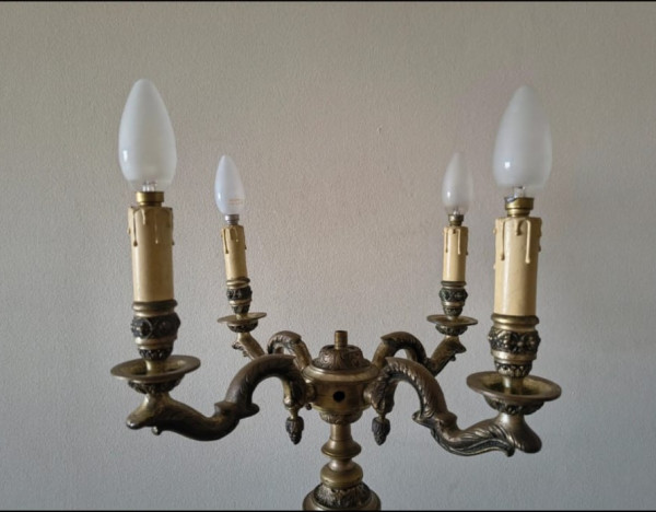 Beautiful antique Iron floor lamp with ornate candelabra-style arms and claw-foot base.