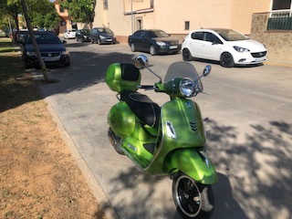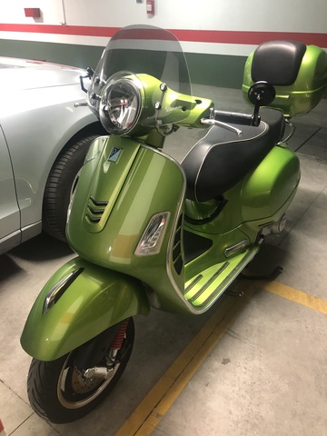 Magnifica vespa gts 300 i. e abs y asr. al dia de mantenimiento . extras originales vespa con baul grande en color de la moto , pantalla corta ahumado . a todo prueba. esta completamente nueva es volver a estrenar. Color Verde metalizado